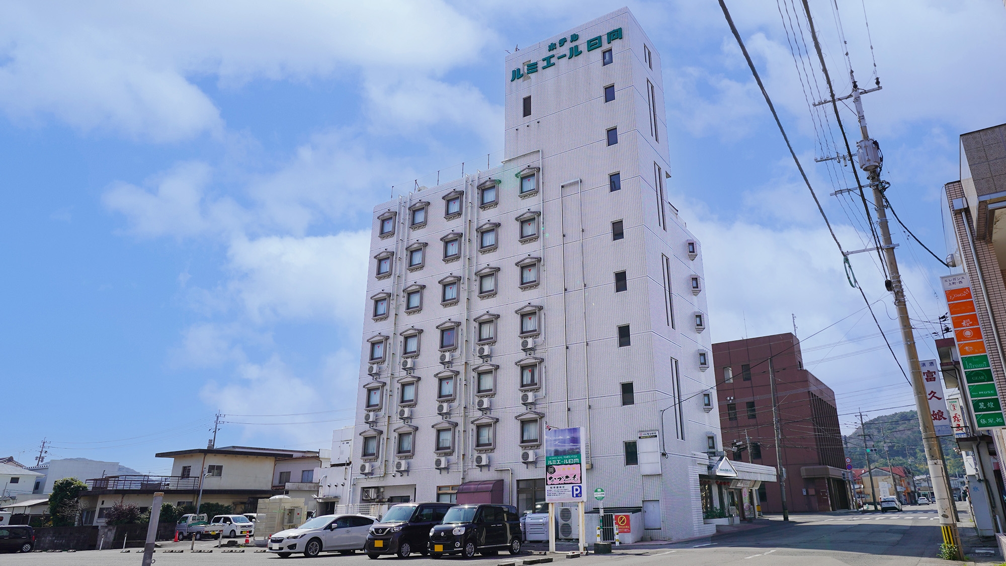 アクセス :JR「日向市駅」より徒歩7分。コンビニが徒歩1分で行けます。市街地中心。ホテル周辺に居酒屋、カラオケなどがあります。