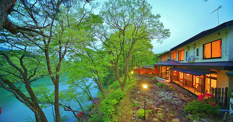 全6室のこぢんまりとした家庭的な宿。流れのゆるやかな鬼怒川に面しており、趣のある会席料理が味わえます。