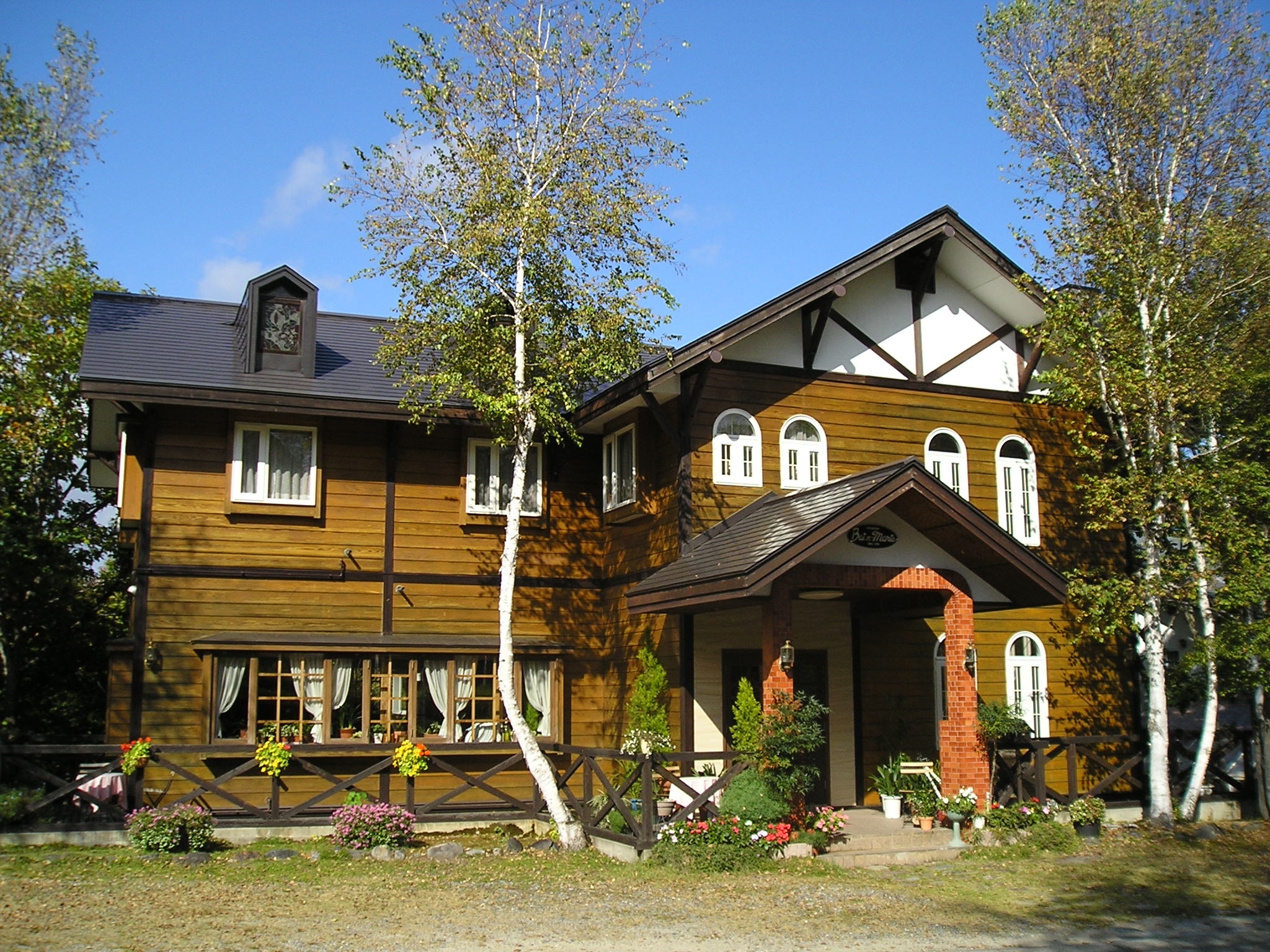 四季の自然、木肌のぬくもりが伝わってくる山小屋風のペンションです。冬はスキー、ボードで楽しめます。