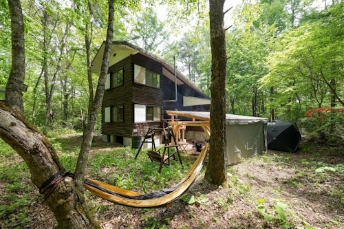 小川流れる豊かな森で穏やかに過ごす自然共生型キャビン