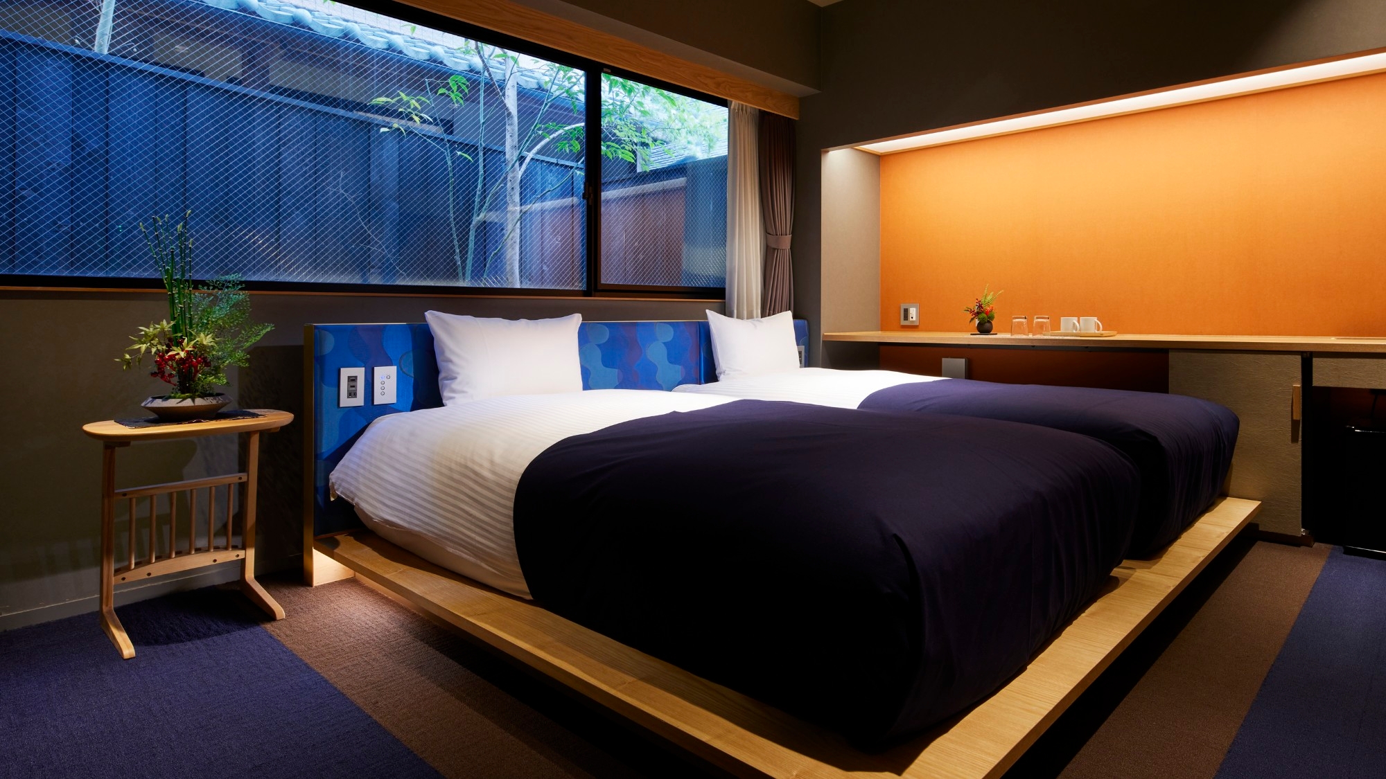 和の装いとモダニズムが融合した『和モダンホテル』。ツインは19平米以上。DXツインは24平米以上でトイレ・バス独立。
