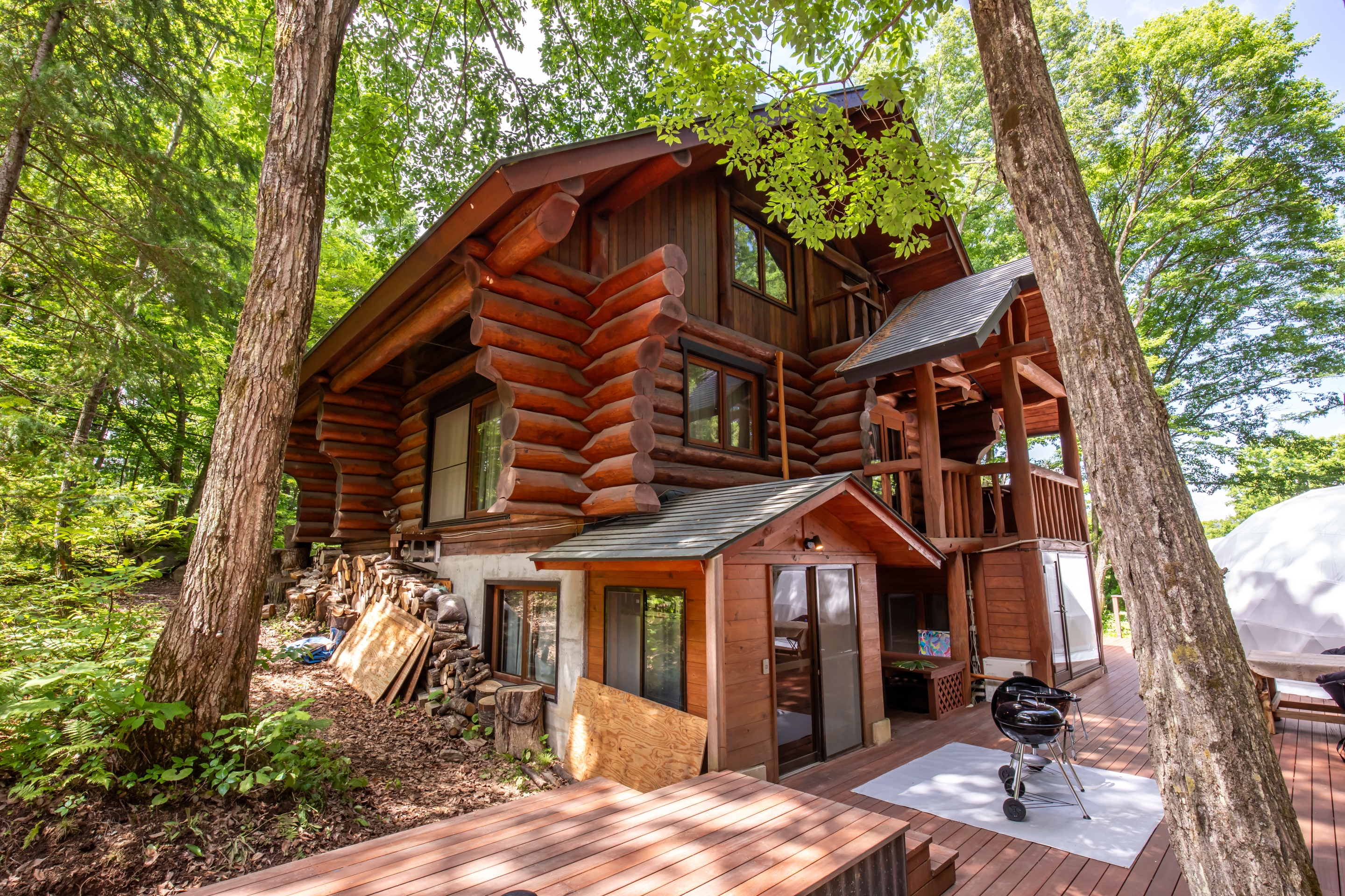 広大なログハウス、ドームテント2つ、露天風呂、サウナ。丸々貸し切り!特別な時間を気心の知れた仲間と。